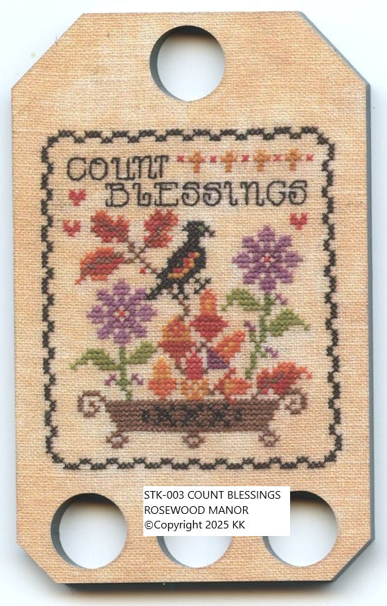 This small piece can be stitched alone or with the two other smalls--GIVE THANKS & BE GRATEFUL --vertically or horizontally! Then you can also use the small thread keeps that match as thread keeps!